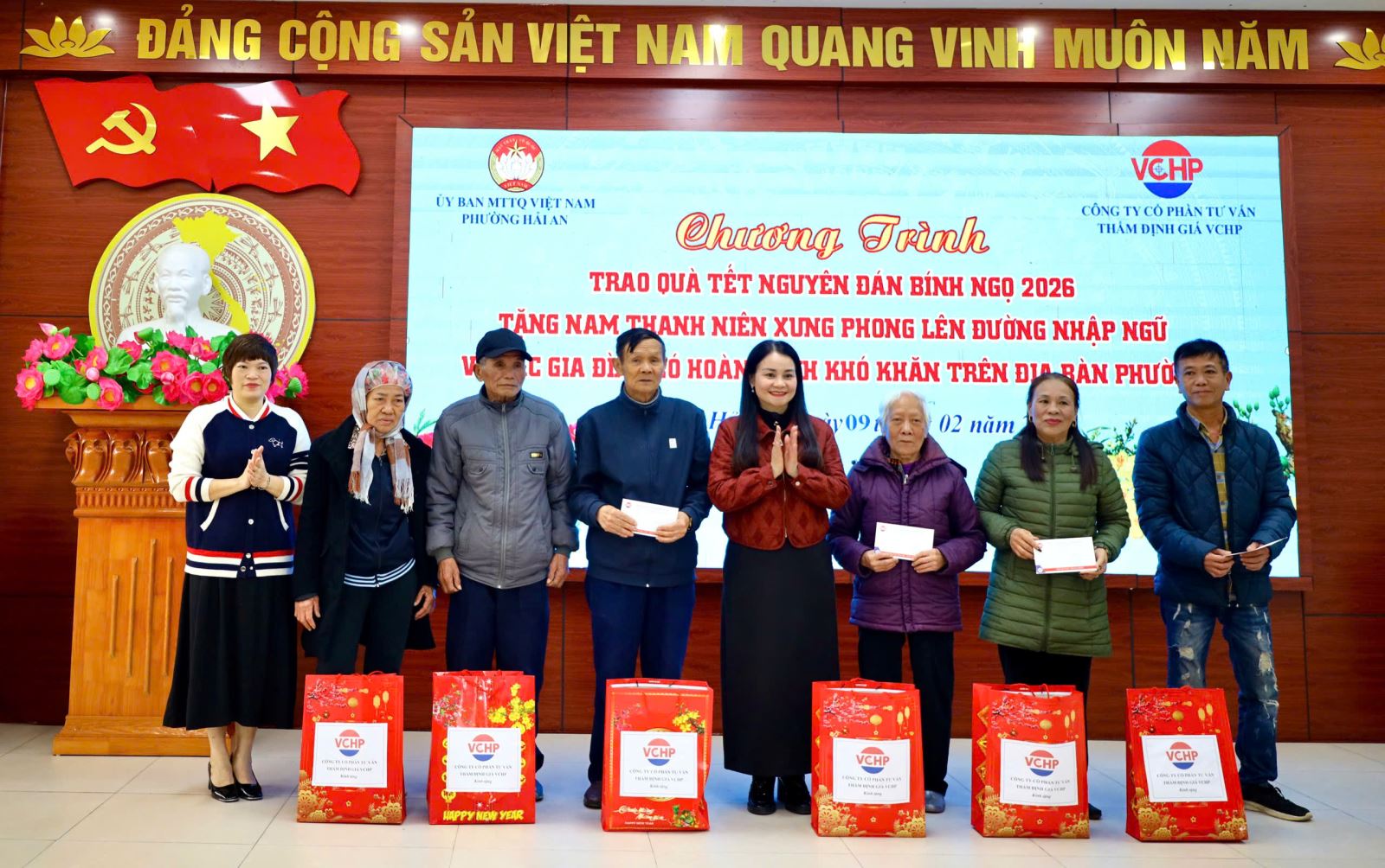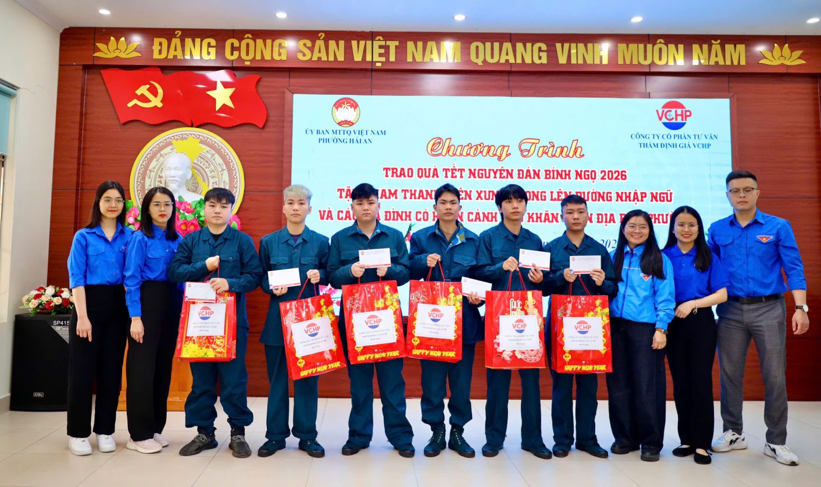 Ngày 09/02/2026, tại Trường Tiểu học Thành Tô, phường Hải An, Công ty Cổ phần Tư vấn Thẩm định giá VCHP phối hợp cùng Ủy ban MTTQ Việt Nam phường Hải An tổ chức trao tặng 50 phần quà cho các gia đình có hoàn cảnh khó khăn và động viên nam thanh niên chuẩn bị lên đường nhập ngũ năm 2026 nhân dịp Tết Nguyên đán Bính Ngọ.